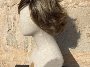 The best of both worlds! Ethically sourced remy human hair mixed with the highest grade synthetic fibres. The most amazing thing about this wig is – No need to style! Wash and air dry and she dries just as the picture! Such an easy no fuss wig!