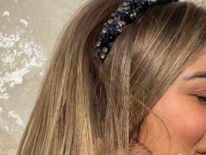 The perfect accessory for your wig. Beautiful diamond and navy glass bead encrusted hair band, overstated yet subtle and classic elegance